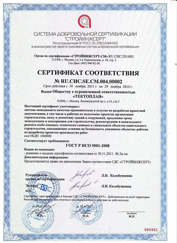 ООО «ТЕКТОПЛАН» аккредитовано в качестве органа по сертификации менеджмента качества в системе «Евразийское качество» и следует в своей работе положениям Стандарта деловой профессиональной этики.