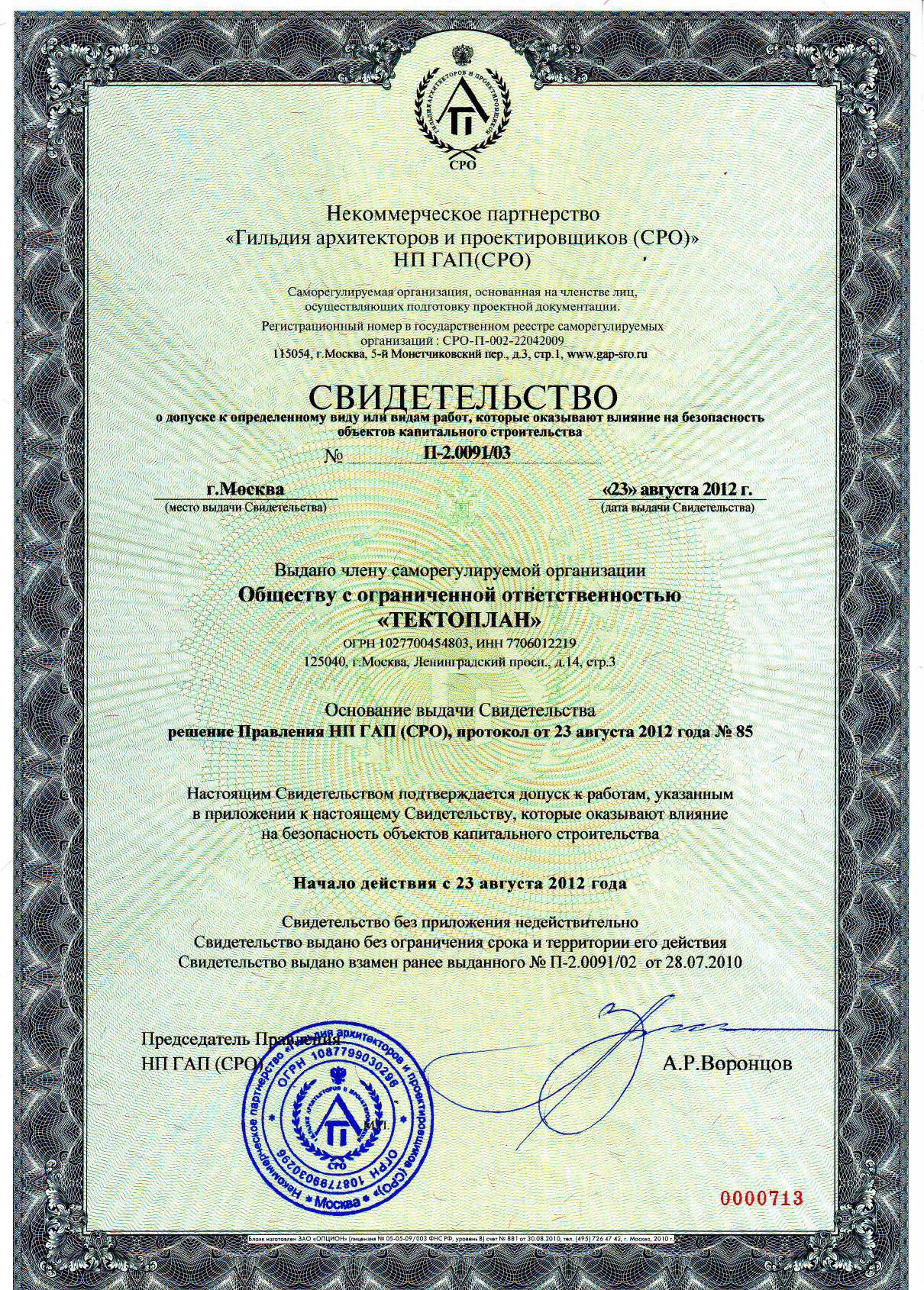 ООО "ТЕКТОПЛАН" является членом НЕКОМЕРЧЕСКОЕ ПАРТНЕРСОВ ГИЛЬДИЯ "АРХИТЕКТОРОВ И ПРОЕКТИРОВЩИКОВ (СРО)"