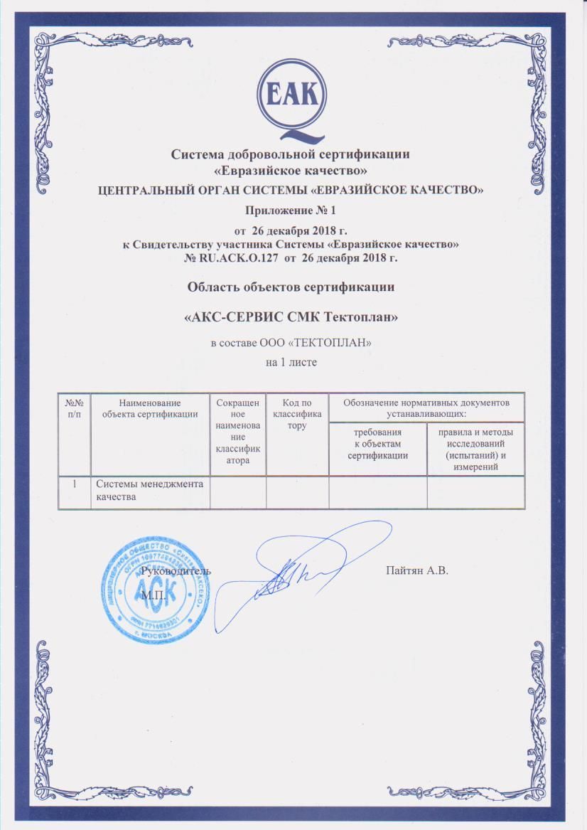 обращайтесь к специалистам Органу по сертификации «АКС-СЕРВИС СМК Тектоплан».